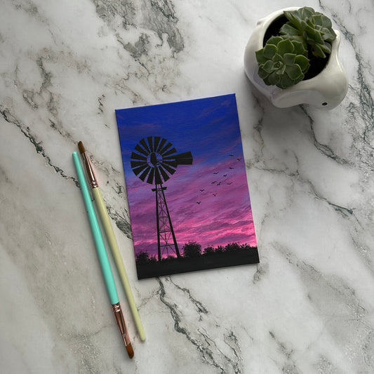 windmill over sunset