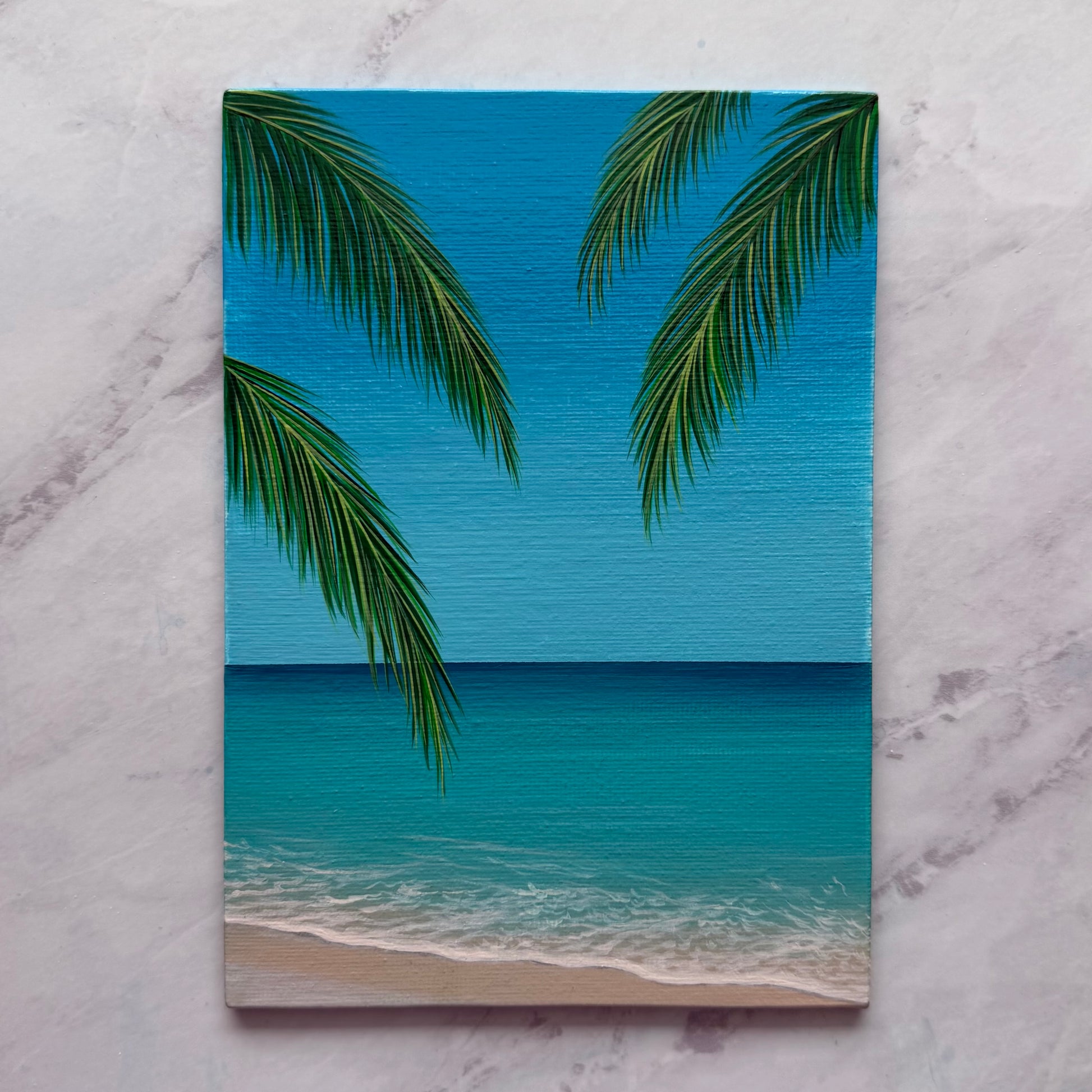 Layered blues and aqua tones create a peaceful, breezy mood that brings a serene coastal touch to any space. Painted on a 5 × 7 inch canvas panel, this original piece is perfect for adding a bit of ocean calm to your home. 🌴🩵🌊