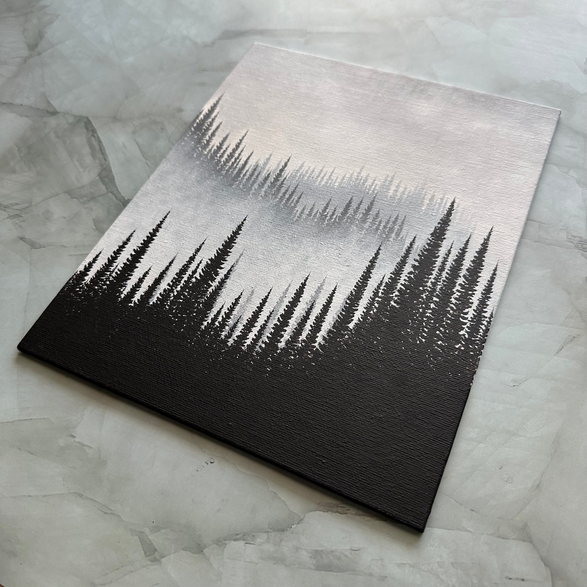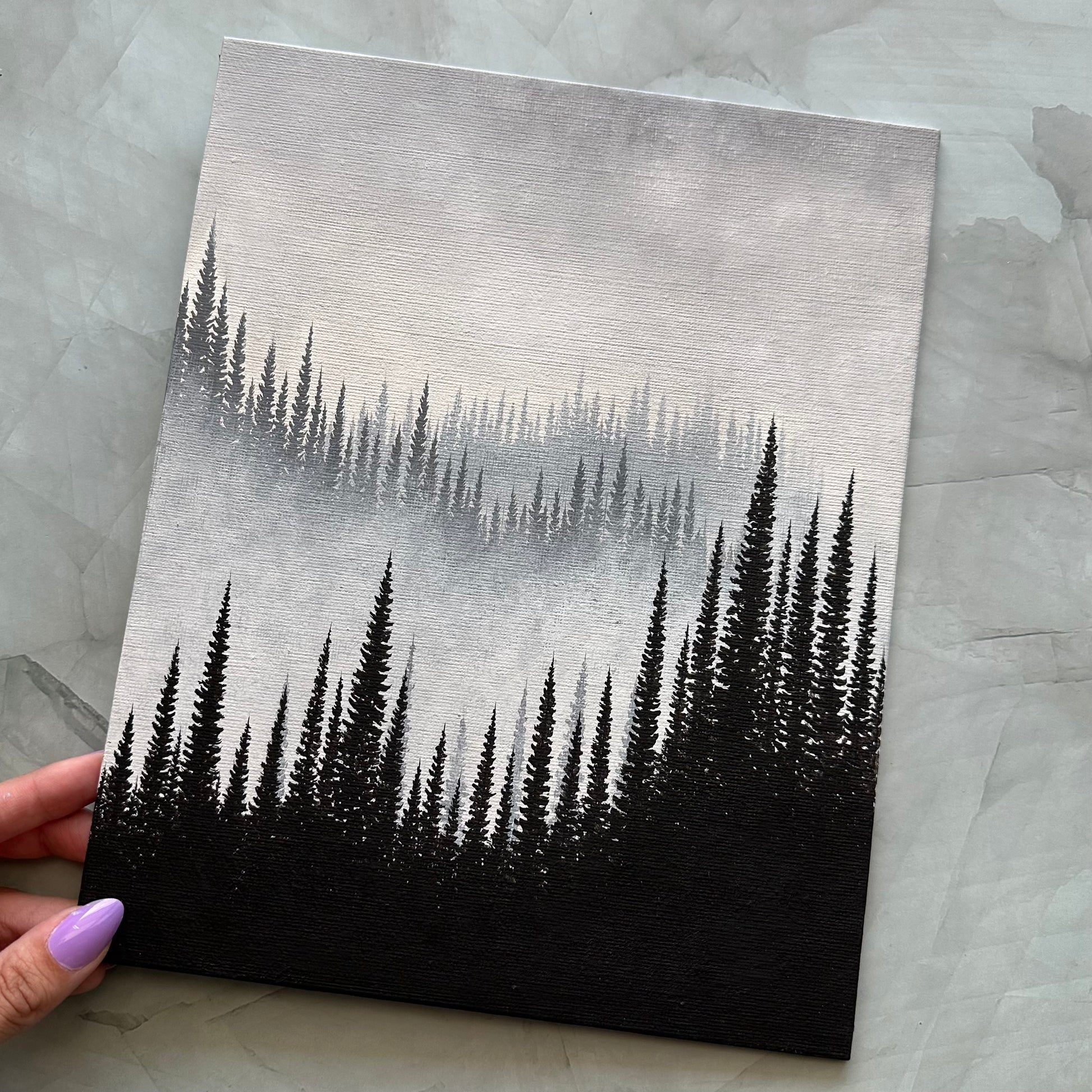 Painted on a canvas panel, this original acrylic painting is signed on the back for authenticity and will arrive ready to frame or display as you wish. 🌲☁️✨
