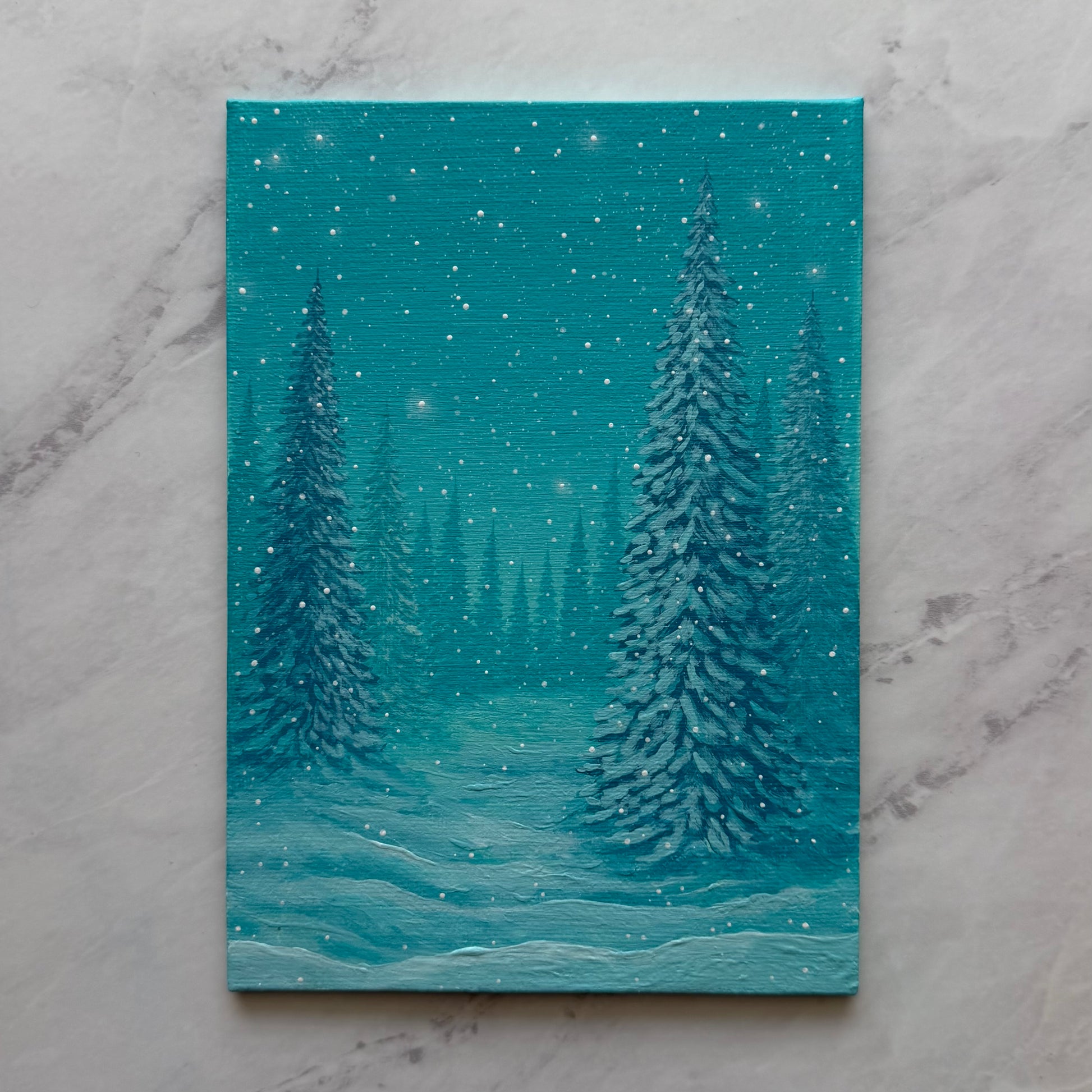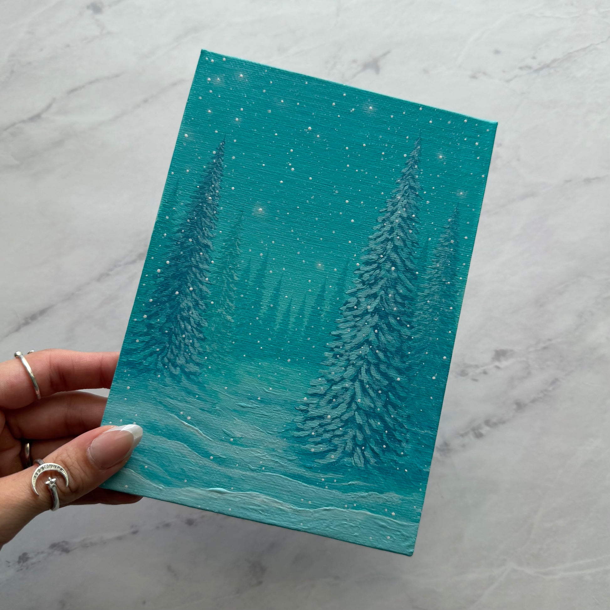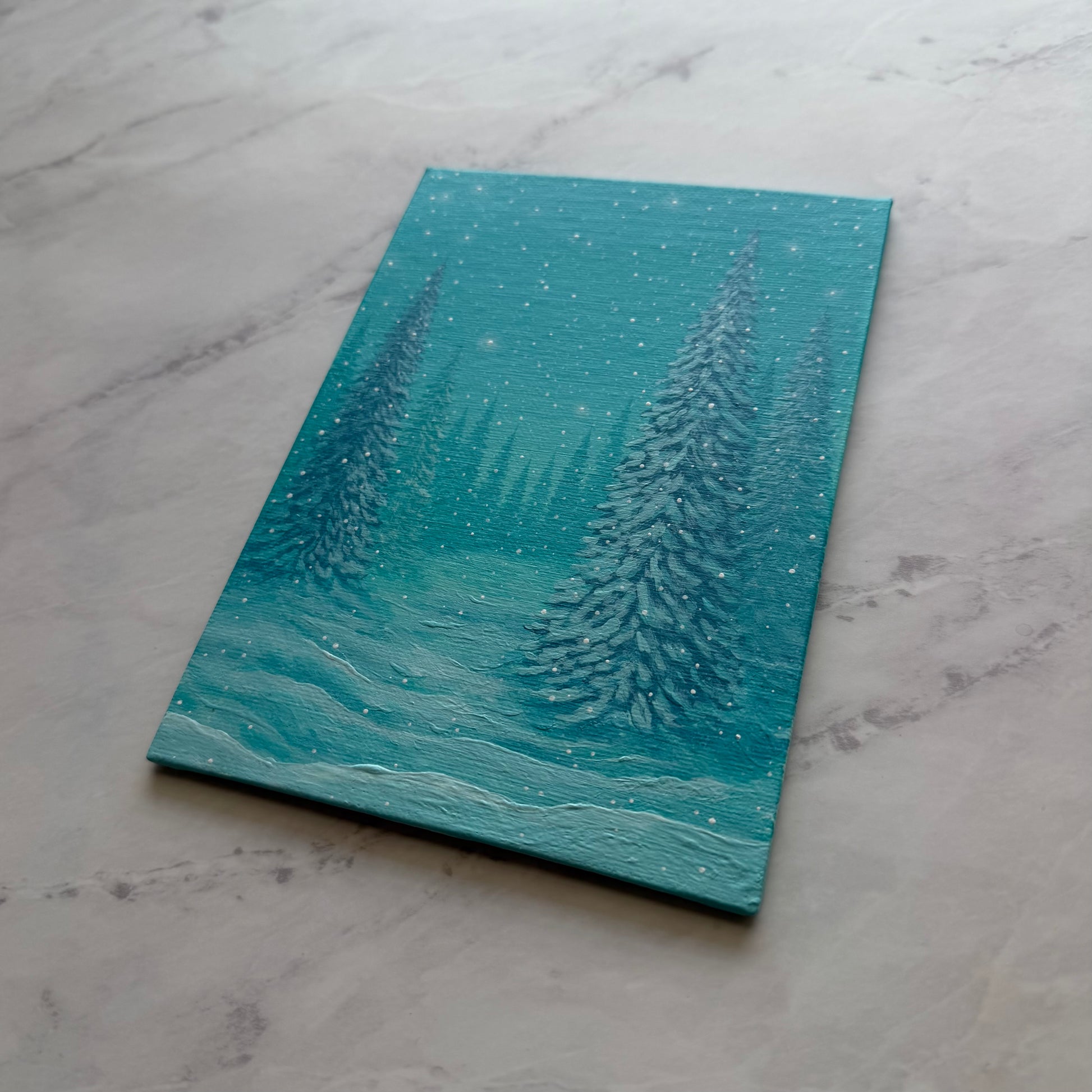 Painted on a 5 x 7 inch canvas panel and signed on the back, this one-of-a-kind original brings a calming winter escape to any space. ❄️🩵✨